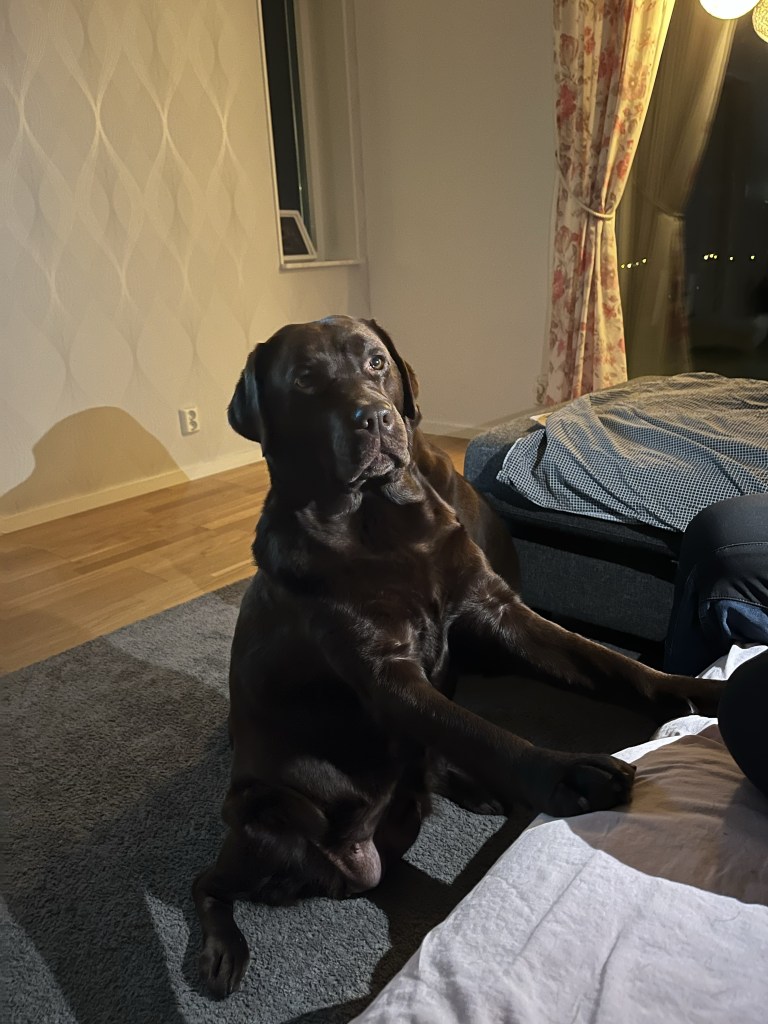 Ja alltså nu så går vi verkligen i väntans tider men fröken låter sig hållas och vi myser inne medan det smattrar på rutorna ute. En liten runda blev det tidigt i morse och något roligt som Rut har börjat med sedan hon blev dräktig det är att vilja bära hem tidningen från brevlådan eller även om det är ett litet paket och hon gör det med stolthet 😍. Men magen på Rut har verkligen sjunkit och det är så spännande och på videon kan man se hennes rejäla mage och vi som är vana att se henne med en sån snygg figur får nu se en vacker dräktig tik och det gör hon så bra ❤️