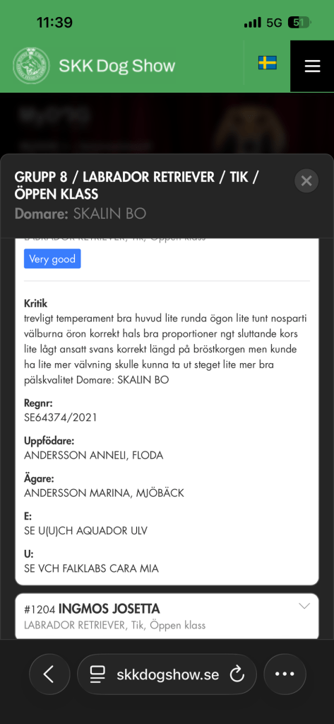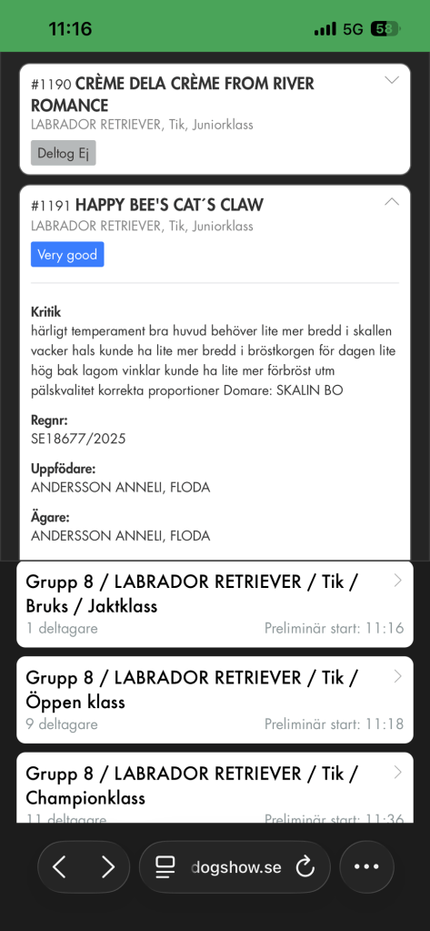 Bridget’s första officiella i Juniorklass tikar bjöd på ett Very Good.