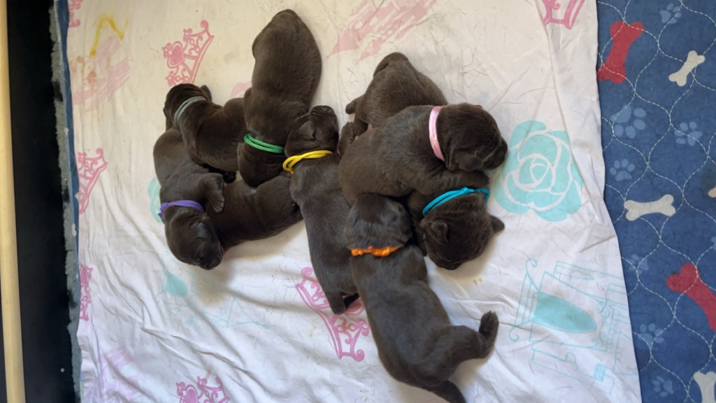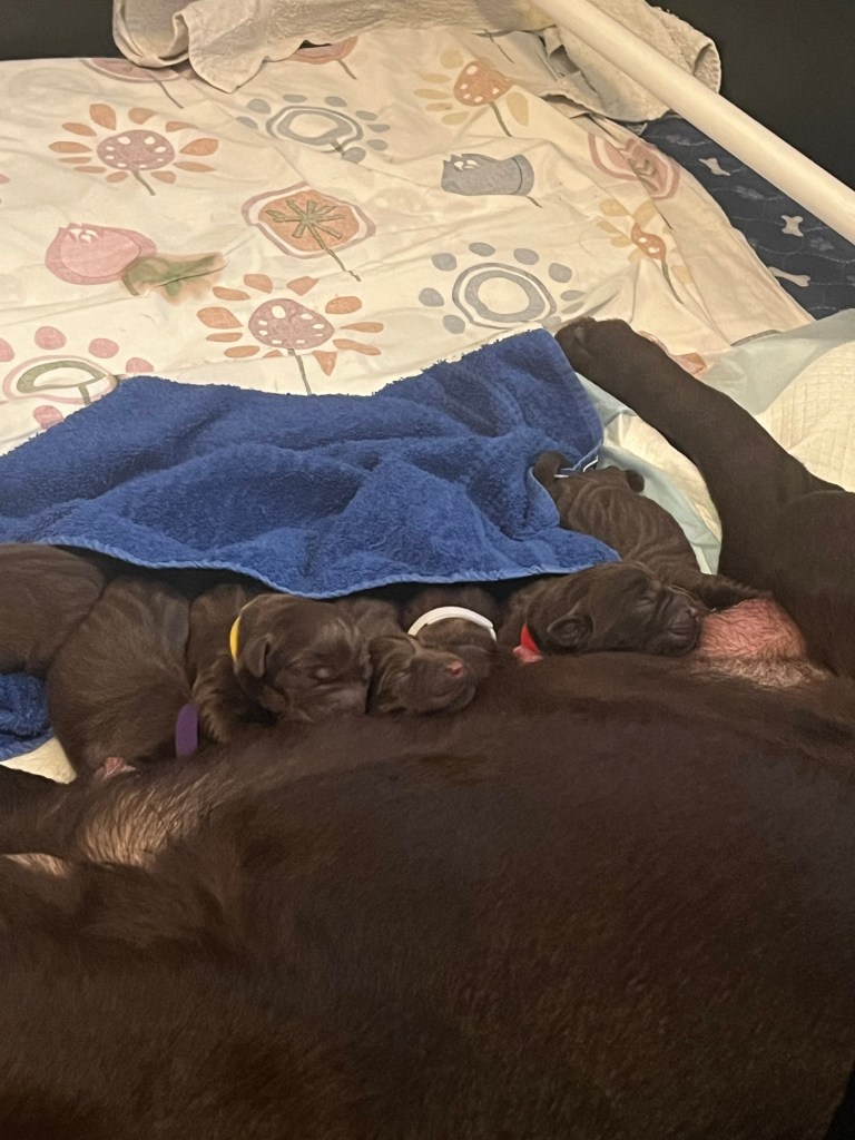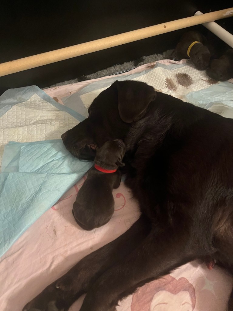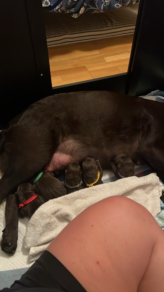 Zelda fick sina valpar natten till 14/3 på dygn 64. Det blev 5 tikar och 3 hanar ❤️