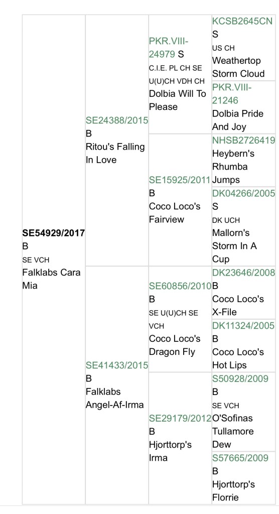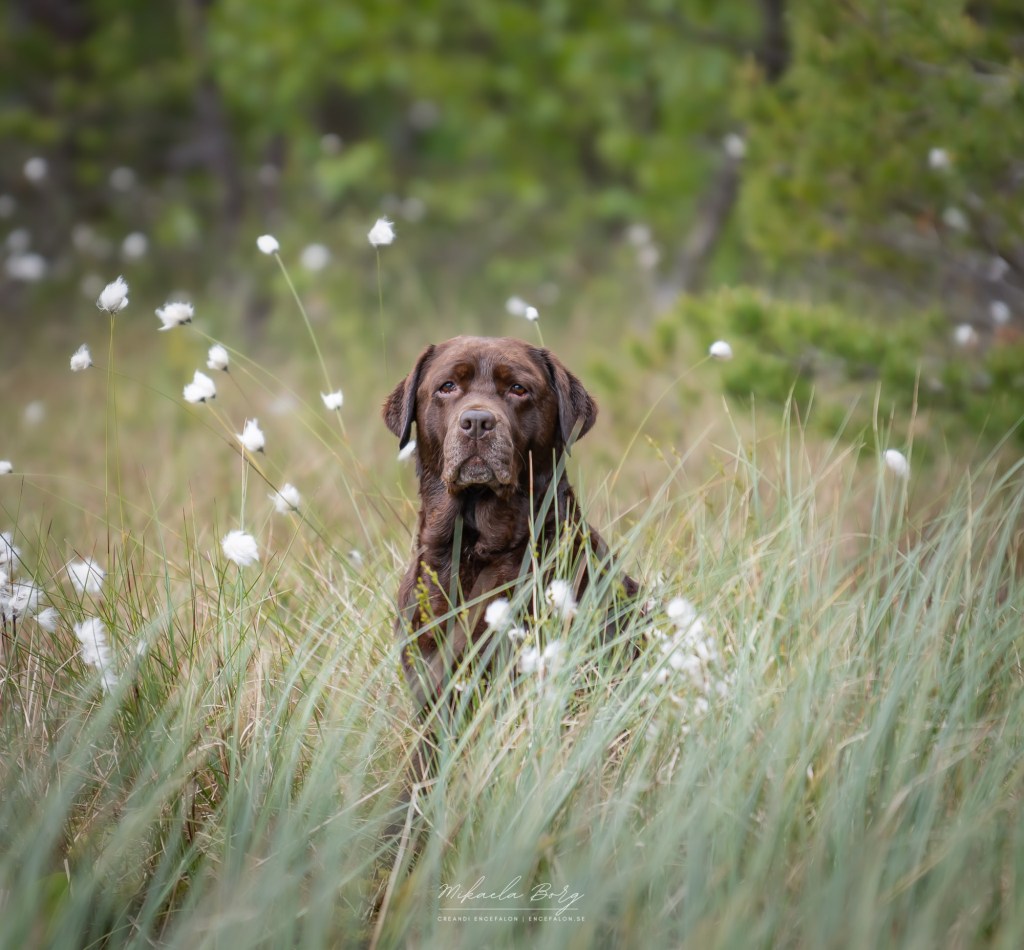 Mia är vår drottning i huset och det vet hon om, Mia är svensk Viltspårchampion och har en tydlig ”will to please” mot oss i arbete och i allt vi gör så är hon snabblärd och vill göra allt för en som förare men har en tydlig av och på knapp. Mia har jag ställt ut på hundutställningar sedan hon var valp och hon har fått Excellent Ck och blivit fint placerad, och något utav det bästa hon vet är att få följa med på hundutställningar. Mia är tiken jag låter grannens barn gå ut och gå med då hon har en lugn och stabil personlighet som gör henne till en fantastisk representant inom rasen och något jag hoppas komma nedärvas till hennes barn och barnbarn.