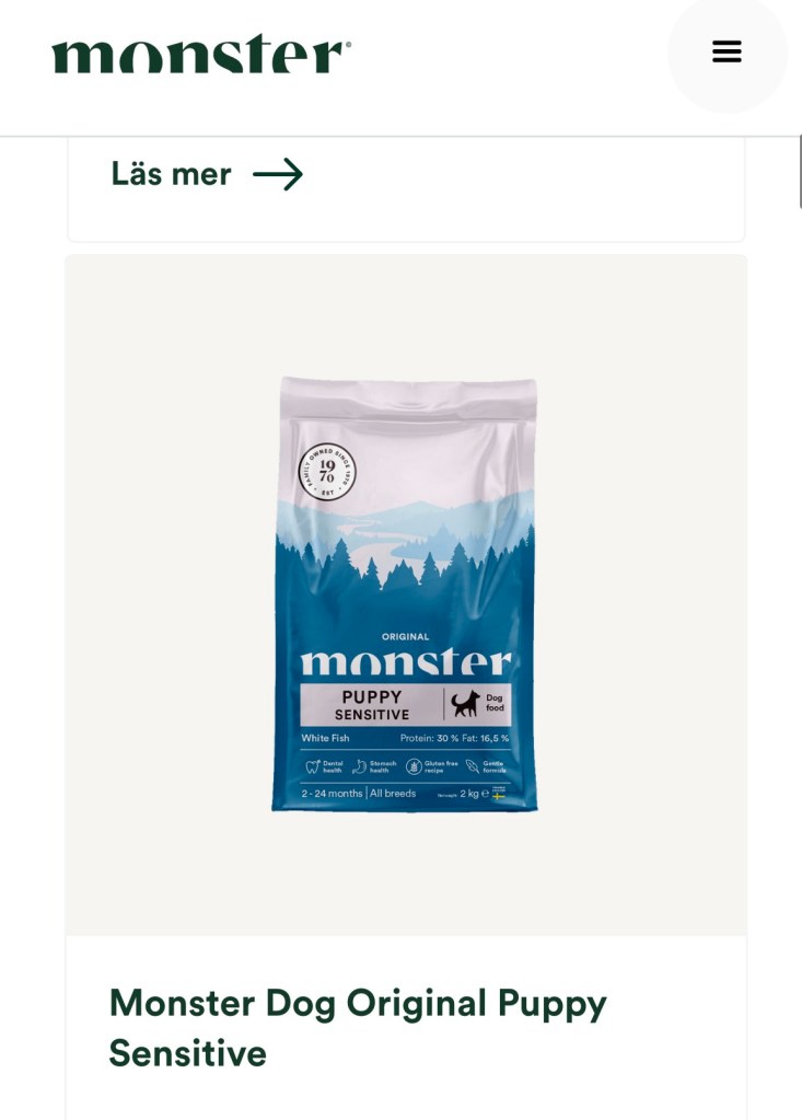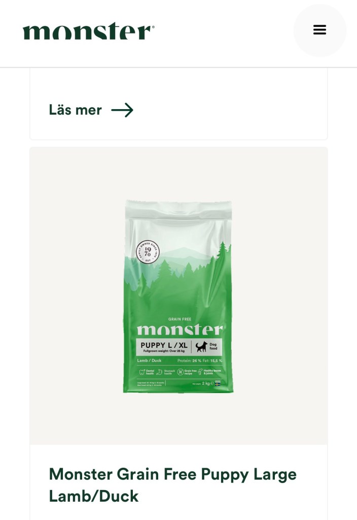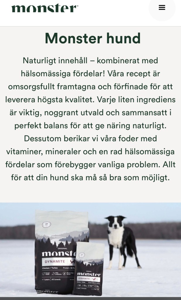Foder… vi bytte ju till Monster Petfood i samma veva som Rut hade sin kull 2023 och oj så bra det är 😍 , det är lite dyrare men de har ofta kampanjer och rabatter så det väger upp för hur fina hundarna är i kropparna och att det är ett väldigt bra innehåll i maten oavsett vilken proteinkälla man väljer för det både syns och märks på pälsarna och allt. Tanken är att Zelda ska äta detta under tiden med valparna då hon äter det redan idag men hon får då äta ett högenergifoder från Monster så att hon och valparna får rätt förutsättningar till en bra utveckling och hälsa, men så det jag gör nu är att undersöker lite extra så att inget saknas i maten hon ska få, och sen även vilket foder vi kommer skicka med valparna vid flytten vid 8 veckors ålder…. Detta ska bli så kul och se hur hennes valpar tar sig på denna maten för vi tycker verkligen den är så bra.