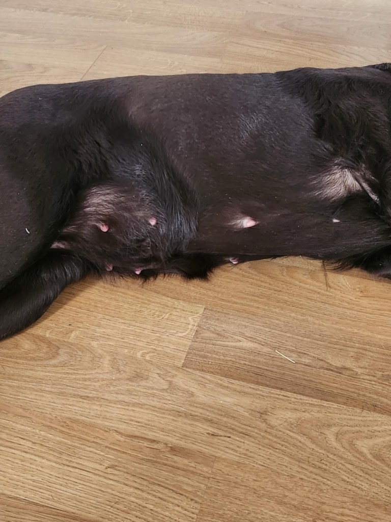 Zelda går nu in i vecka 6 och nu börjar det hända en del hos henne och det syns på henne också att det är valpar på G, men beroende på hur mycket man ser så kan man kanske gissa att där blir några stycken 😅😍 Zelda är så fin och detta är så roligt att få följa än en gång 🙏🏻❤️